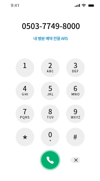 병원 예약 전용 ARS 번호로 전화를 연결하면 병원 인사말 및 예약 메뉴를 안내해드려요.