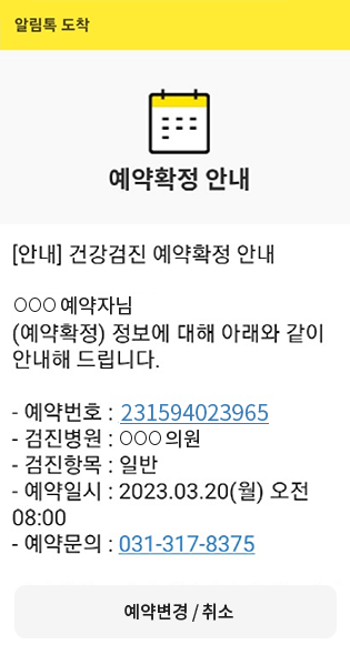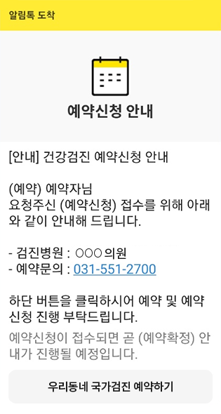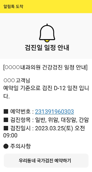 검진 예약 안내 메시지가 자동 발송 됩니다.